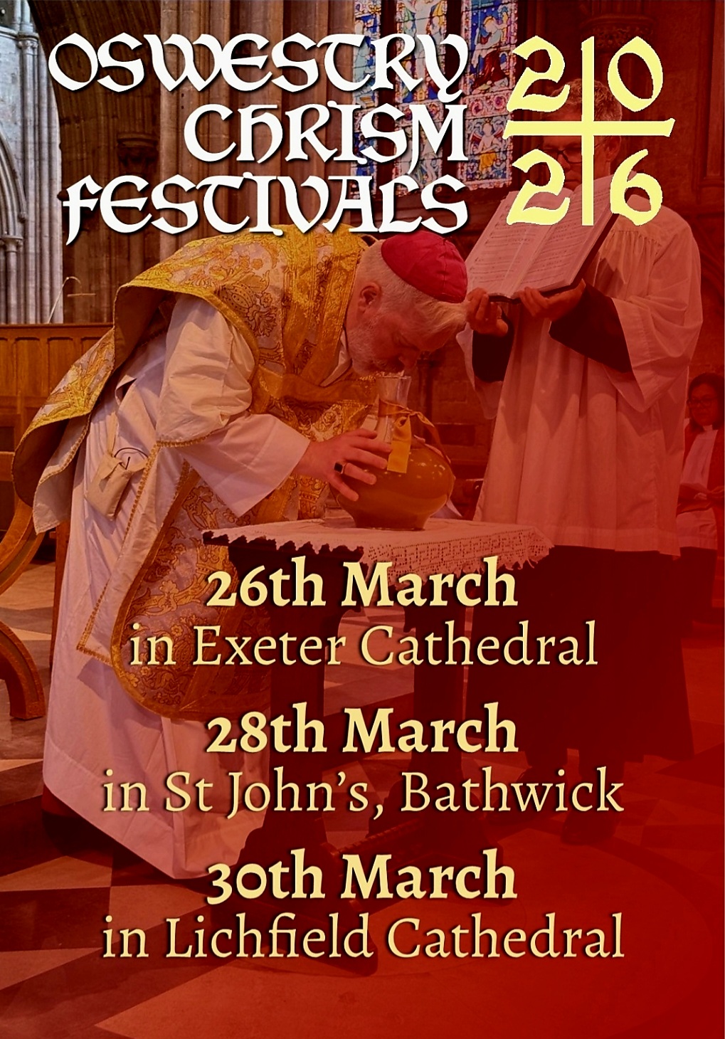 The Bishop of Oswestry will be celebrating the following Chrism Festivals: